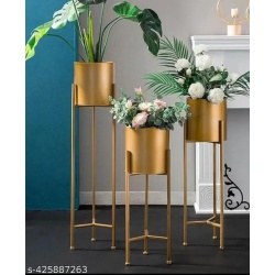 Metal Floor Flower Stands Revitalize Your Space with Our Golden Planter Set of 3 Stylish Durable and Versatile Plant Pots | Perfect for Indoor and Outdoor Gardens Homes and Offices (Gold)