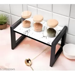 Stainless Steel 2 Tier Kitchen Rack - Spice Boxes Rack Kitchen Stand - Cosmetic Organizer, Counter Top Basket -Floor Mounted Shelf for Home, Tiered Shelf, Multipurpose Kitchen Rack